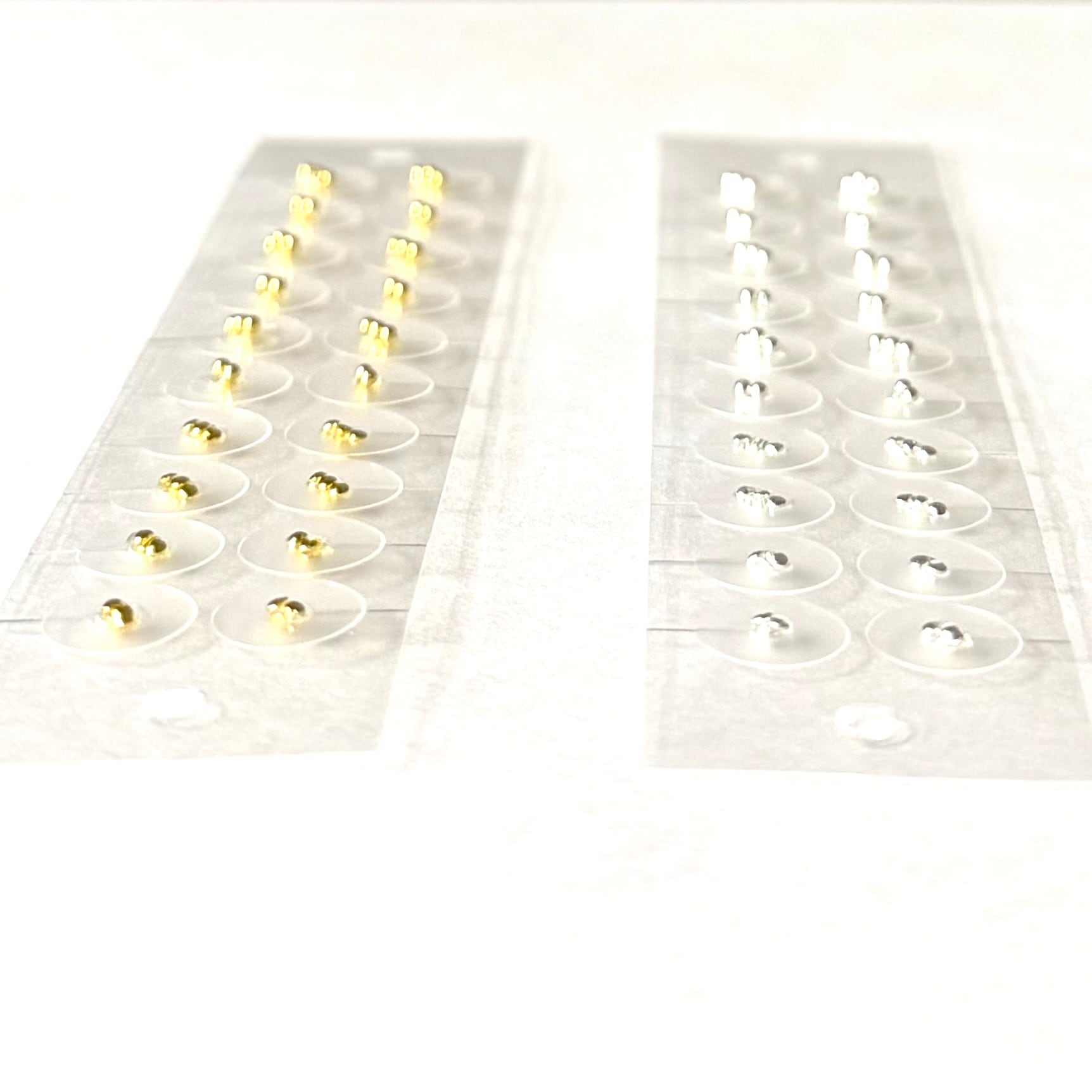 皆さんのリクエストを叶えるために組み合わせた、1ミリの球体形の粒とスタッズの耳つぼシートです。