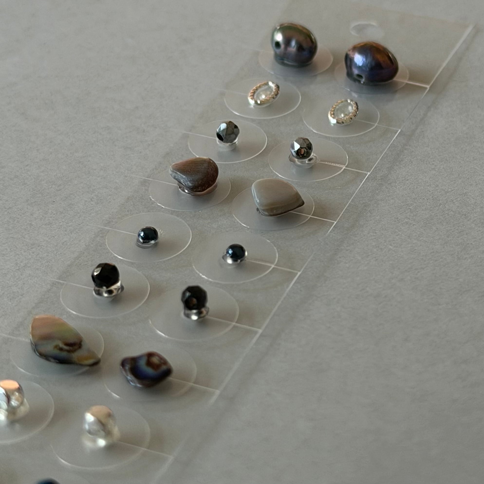 すべてのパーツを2種ずつ入れているので、両耳でピアスのように揃えても、左右で少し変化をつけても楽しめます。