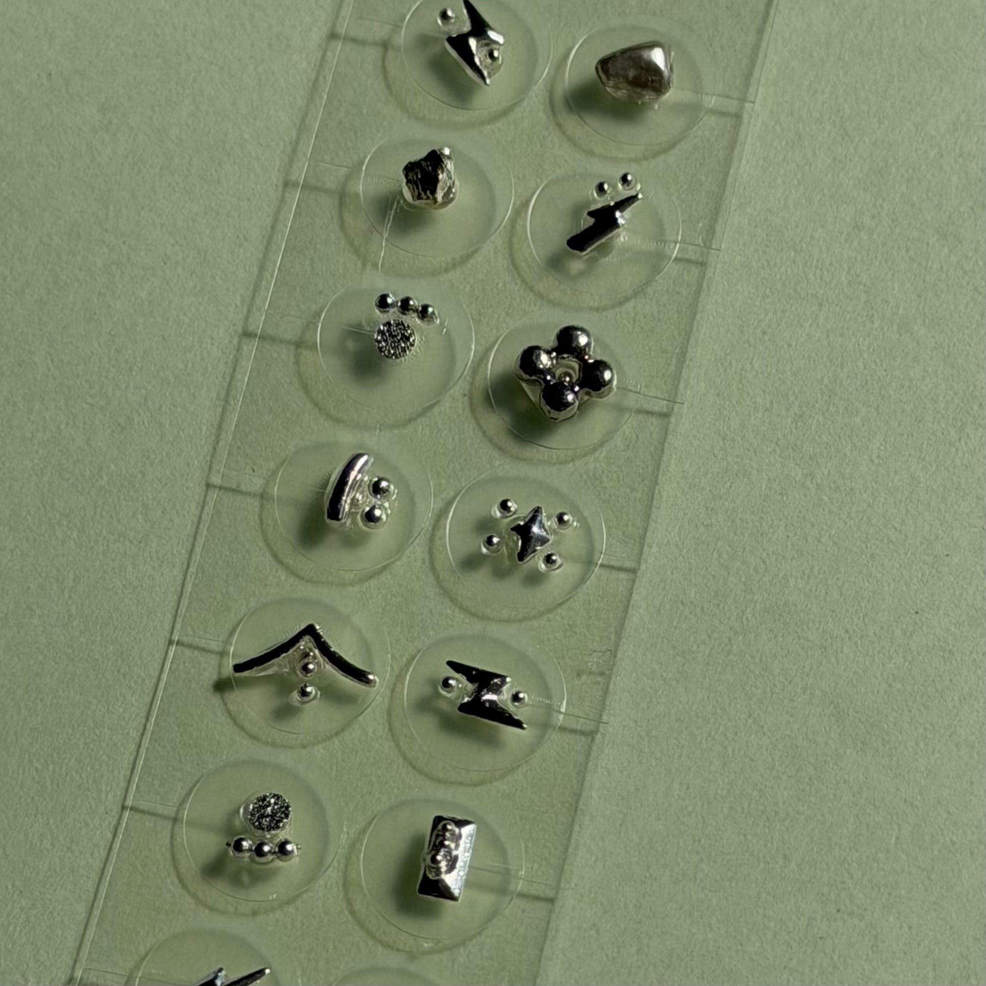 さまざまなシェイプの小ぶりなパーツを重ねながら、