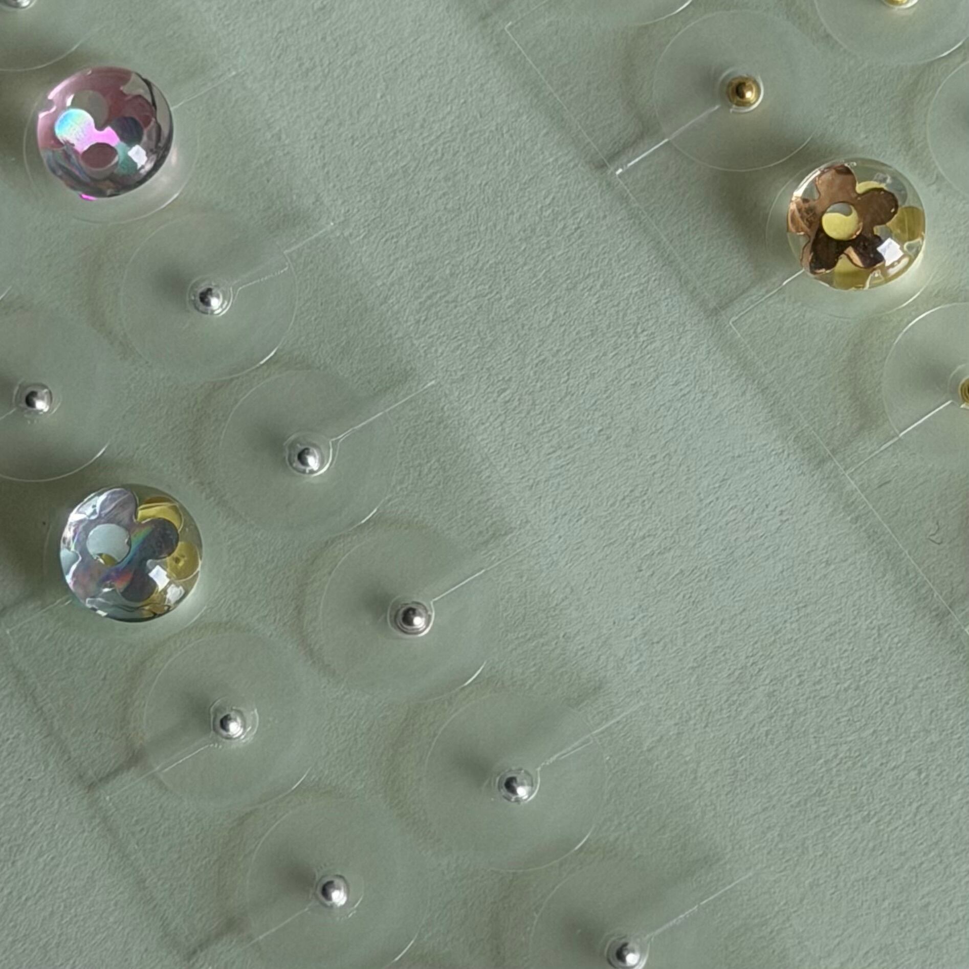 お花のホログラムを、半円のクリアに閉じ込めました。